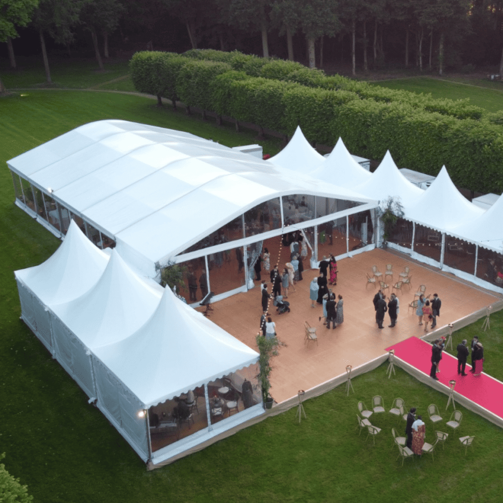 Le meilleur équilibre entre surface, modularité et rapidité d’installation. Adaptée aux événements professionnels comme aux réceptions, avec une configuration flexible selon votre terrain.